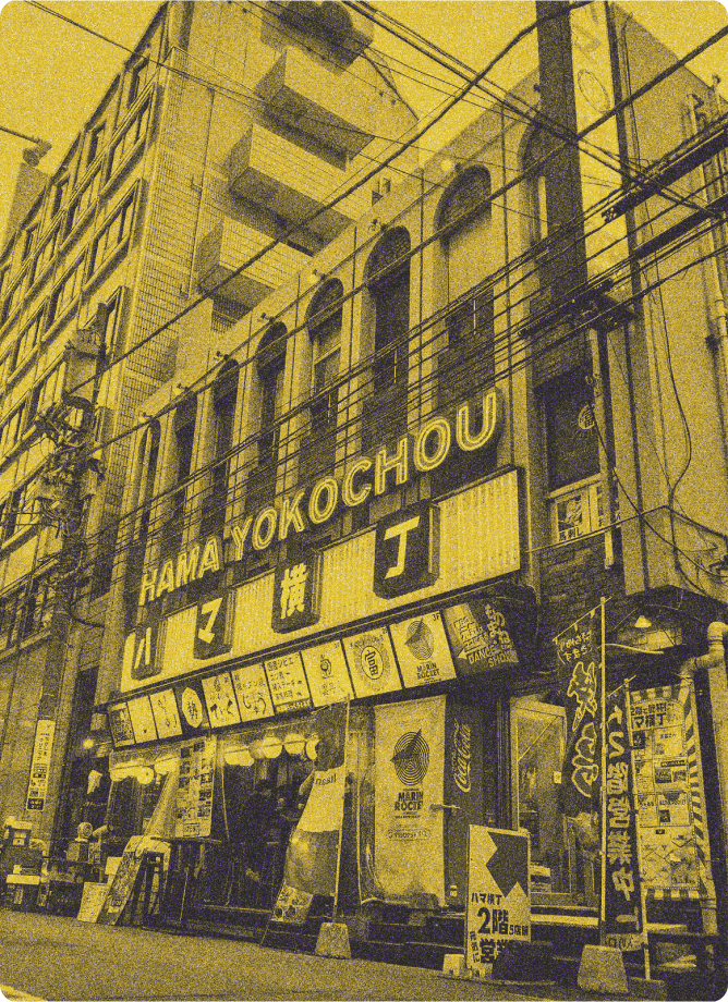 横浜駅から徒歩3分、レトロなネオン看板が輝く屋内横丁、『ハマ横丁』。